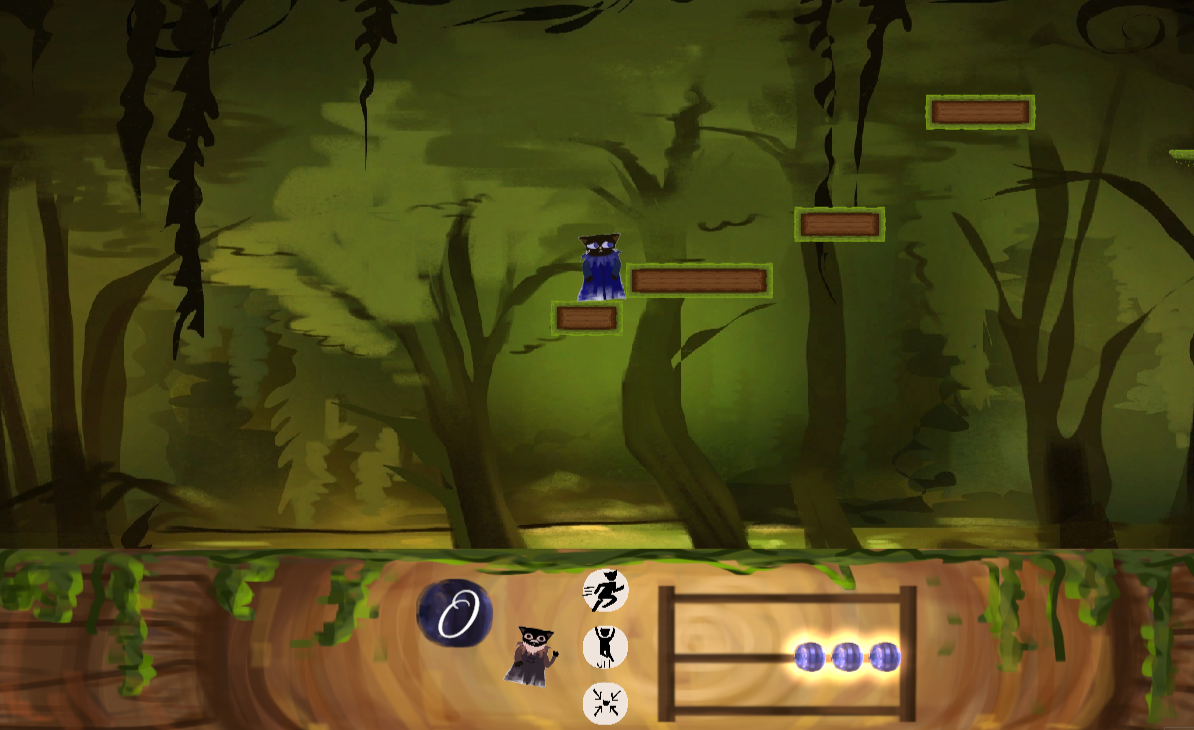 Play with a friend or alone to navigate this foresty platformer, working together to balance your live stats!